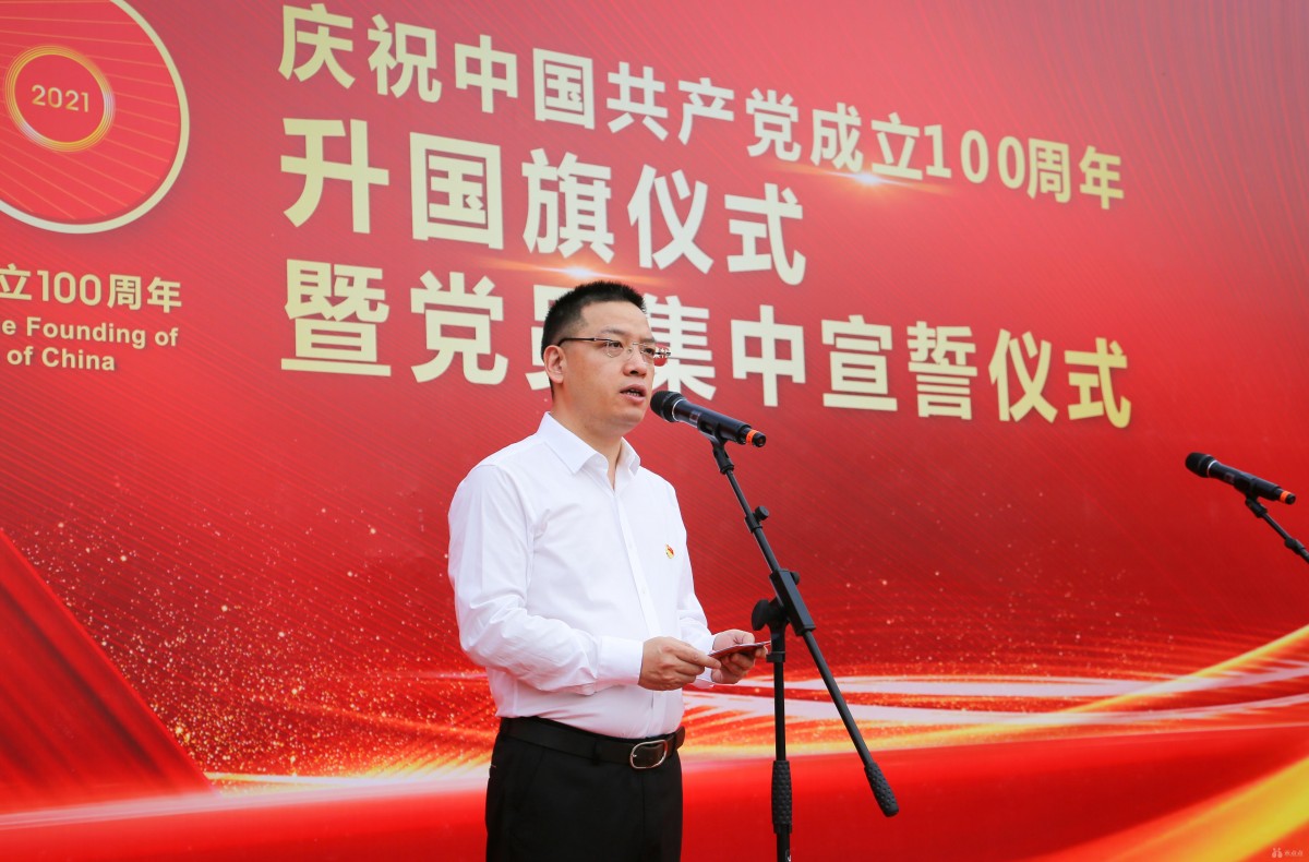 盛付祥在讲话中指出,在伟大的中国共产党百年华诞前夕,举行升旗仪式暨党员集中宣誓仪式,意义非比寻常。希望通过这次活动,表达南湖人“崇敬党、热爱党,心中向着党”的深情,展现南湖人“听党话、跟党走,永远追随党”的决心,践行南湖人“为了党、献身党,始终服务党”的诺言,以敢于创新、勇于担当、乐于奉献的实际行动迎接建党100周年。