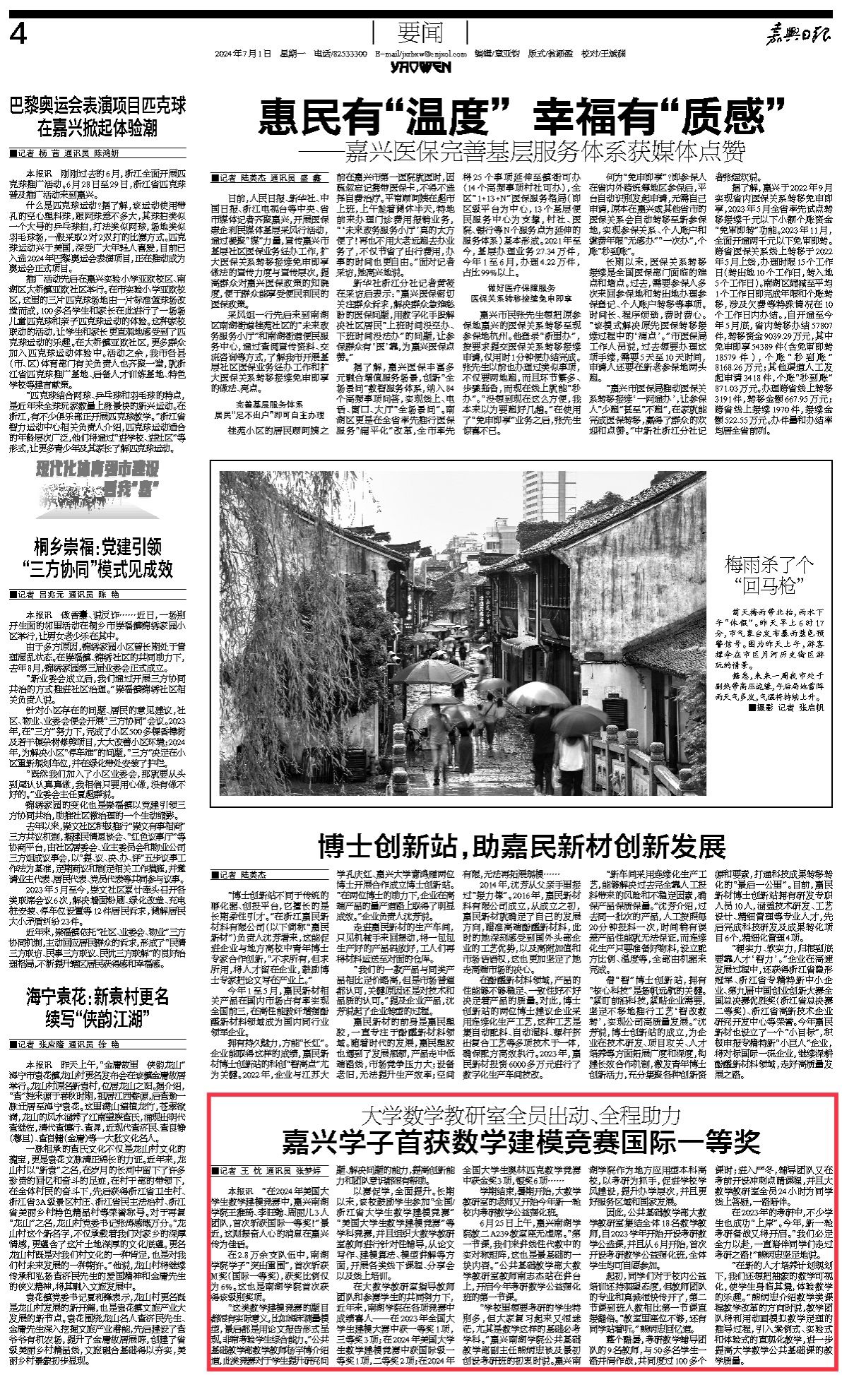 嘉兴日报:大学数学教研室全员出动、全程助力 嘉兴学子首获数学建模竞赛国际一等奖